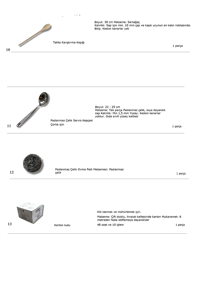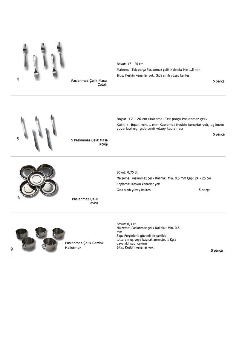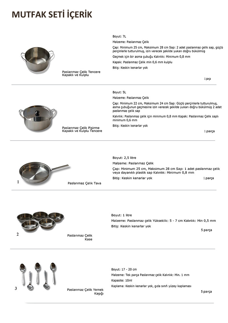 »   5 kişilik bir aileye uygun pişirme ve servis gereçleri