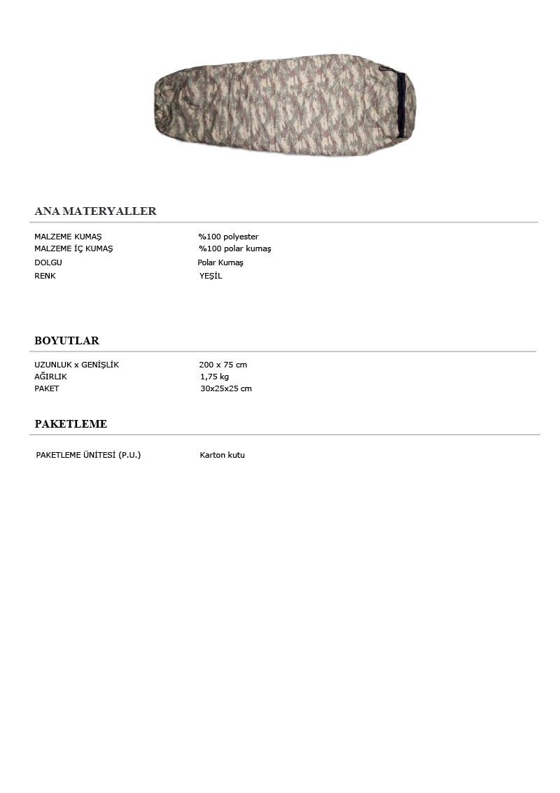 » 1 kişilik polyester uyku tulumu
